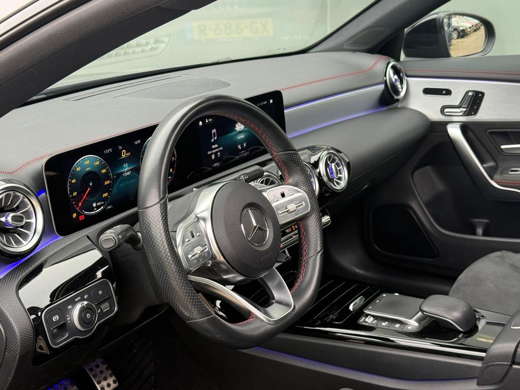 "Lichtmetalen velgen 17""", AMG-styling, Accident Avoidance System, Achterbank in delen neerklapbaar, Achteruitrijcamera, Airbag(s) hoofd achter, Airbag(s) hoofd voor, Airbag(s) knie, Airbag(s) side voor, Airbag bestuurder, Airbag passagier, Aluminium interieur afwerking, Anti Blokkeer Systeem (ABS), Armsteun achter, Armsteun voor, Audio installatie, Bandenspanningscontrolesysteem, Bestuurdersstoel in hoogte verstelbaar, Binnenspiegel automatisch dimmend, Bots herkenning en activatie, Bots waarschuwing systeem, Buitenspiegel(s) automatisch dimmend, Buitenspiegels elektrisch inklapbaar, Buitenspiegels elektrisch verstelbaar, Buitenspiegels met verlichting, Buitenspiegels verwarmbaar, Connected services, Cruise control, DAB-ontvanger, DEALER ONDERHOUDEN, Dimlichten automatisch, Electronic Stability Program (ESP), Electronic climate controle, Elektrisch bedienbare achterklep met sensorsturing, Elektrische kofferbakklep, Elektrisch glazen panorama-dak, Elektrisch verstelbare bestuurdersstoel met geheugen, Extra getint glas, Grootlicht-assistent, Keyless entry, Keyless start, Koplampen adaptief, LED achterlichten, LED dagrijverlichting, LED koplampen, Lane assist, Lederen stuurwiel, Lederen versnellingspook, Lendesteunen (verstelbaar), Matrix LED koplampen, Memory stoelen elektrisch, Metallic lak, Multimedia-voorbereiding, Navigatie-systeem full map + hard disk, Navigatie via Apple Carplay, Panoramadak, Parkeer-assistent, Parkeersensor achter, Parkeersensoren, Parkeersensor voor, Passagiersstoel in hoogte verstelbaar, Privacy glass, Radio, Regensensor, Rijstrooksensor met correctie, Schakelmogelijkheid aan stuurwiel, Sfeerverlichting, Sportstoelen, Sportstuur, Spraakbediening, Start/stop systeem, Startblokkering, Stoelverwarming, Stof/kunstlederen bekleding, Stuurwiel multifunctioneel, Tractie Controle Systeem (TCS), Variabele stuuroverbrenging, Verkeersbord detectie, Verlaagde carrosserie, Vermoeidheids herkenning, Verwarmde voorstoelen, Virtual cockpit, Volledig digitaal instrumentenpaneel