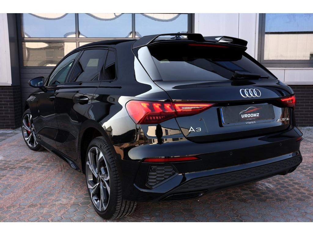 "Lichtmetalen velgen 5-spaaks 17""", "Lichtmetalen velgen 18""", Accident Avoidance System, Achterbank in delen neerklapbaar, Airbag(s) hoofd achter, Airbag(s) hoofd voor, Airbag(s) side achter, Airbag(s) side voor, Airbag bestuurder, Airbag passagier, Alarmsysteem, Aluminium interieur afwerking, Anti Blokkeer Systeem (ABS), Armsteun achter, Armsteun voor, Audio installatie premium, Bandenspanningscontrolesysteem, Bestuurdersstoel in hoogte verstelbaar, Binnenspiegel automatisch dimmend, Bots herkenning en activatie, Brake Assist System, Buitenspiegel(s) automatisch dimmend, Buitenspiegels elektrisch verstelbaar, Buitenspiegels verwarmbaar, CarPlay, Carbon exterieur delen, Centrale deurvergrendeling met afstandsbediening, Connected services, Cruise control, Cruise control adaptief met Stop&Go, DAB-ontvanger, Dakspoiler, Dimlichten automatisch, Draadloze telefoonlader, Electronic Brake Distribution (EBD), Electronic Stability Program (ESP), Electronic climate controle, Elektrisch bedienbare achterklep met sensorsturing, Extra getint glas, Grootlicht-assistent, Hill hold-functie, Keyless entry, Keyless start, Koplampen adaptief, Koplampreiniging, LED-lichtpakket, LED achterlichten, LED dagrijverlichting, Lederen bekleding, Lederen stuurwiel, Luxe lederen bekleding, Matrix LED koplampen, Metallic lak, Multimedia-voorbereiding, Navigatie full map, Oplaadmogelijkheid, Parkeer-assistent, Parkeer pakket, Parkeersensor achter, Parkeersensor voor, Passagiersstoel in hoogte verstelbaar, Premium kleur, Radio, Regensensor, Rijstrooksensor, Rijstrooksensor met correctie, Ruitensproeiers verwarmbaar, S Line exterieur, Sportstoelen, Sportstuur, Start/stop systeem, Startblokkering, Stof/kunstlederen bekleding, Stuurbekrachtiging, Stuurhulp, Stuurwiel multifunctioneel, Telefoonintegratie premium, Tractie Controle Systeem (TCS), Uitwijk assistent, Verkeersbord detectie, Verwarmde voorstoelen, Volledig digitaal instrumentenpaneel, Warmtewerende voorruit, WiFi voorbereiding, Wis-/was installatie voor koplampen