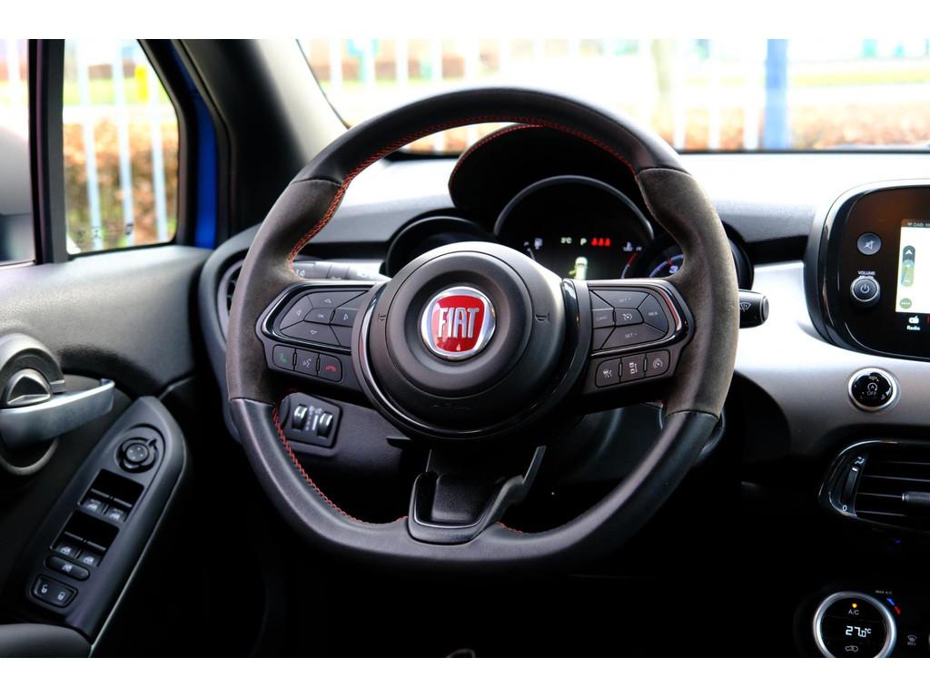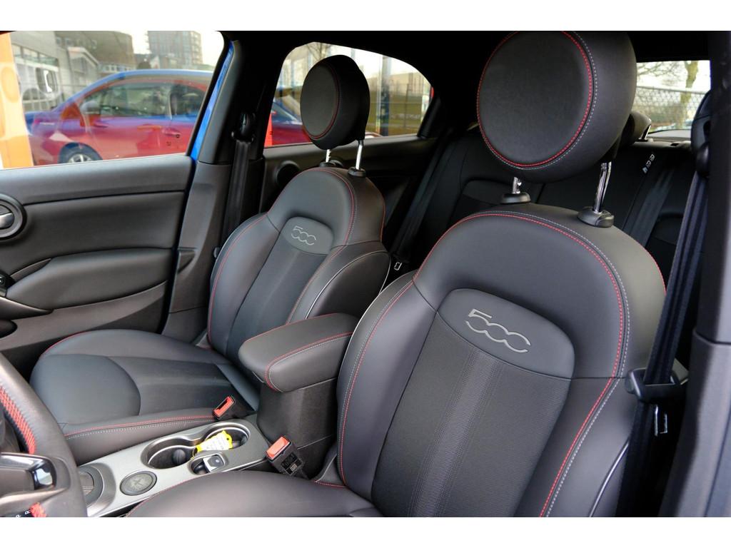 Bijzonderheden: Italiaanse auto's verloochenen hun identiteit niet. Dat geldt ook voor deze Fiat 500 X. De aandrijving van deze Fiat wordt verzorgd door een viercilinder motor en een automatische transmissie. 's Winters komen de verwarmbare voorstoelen heerlijk van pas. Zijwaartse g-krachten worden solide opgevangen door de sportstoelen. Natuurlijk behoren 18 inch lichtmetalen velgen, LED koplampen, sportonderstel, warmtewerend glas, in delen neerklapbare achterbank en LED-achterlichten ook tot de uitrusting van deze complete auto. Nekkramp en verdraaide schouders zijn verleden tijd. Door de achteruitrijcamera is iedere meter achter de auto glashelder in beeld. Met adaptive cruise control houdt deze auto automatisch afstand tot uw voorligger. Voor een veilige rit is het belangrijk dat uw handen het stuur vasthouden en uw ogen gefocust blijven op de weg; daarom kunt u het audiosysteem, met DAB-ontvangst en navigatiesysteem bedienen met het stuurwiel of via spraakbediening. Dankzij automatische airconditioning is het interieur behaaglijk warm of verfrissend koel. De elektronische systemen in deze Fiat helpen u actief om comfortabeler te rijden. Een automatisch inschakelbare verlichting en een regensensor houden de omstandigheden onderweg in de gaten. Deze Fiat is voorzien van sportstuurwiel, keyless entry, automatisch dimmende binnenspiegel, boordcomputer en lederen versnellingspook. Pragmatisch en veilig als deze auto is, beschikt hij over diverse veiligheidssystemen. In het instrumentarium kunt u bovendien de verkeersborden zien die u onderweg tegenkomt. Zo helpt deze Fiat u om veiliger te rijden. Het Lane-keeping systeem registreert permanent of u binnen de lijnen van de rijstrook blijft; dwaalt u onbedoeld af, dan waarschuwt het systeem en corrigeert de koers. Een ongeluk zit in een klein hoekje. Het accident avoidance system kijkt met u mee en helpt om ongevallen te voorkomen. De veiligheid van deze auto wordt verder verhoogd door dodehoekdetectie, hill hold functie, brake assist en bandenspanningcontrolesysteem. We laten u deze auto graag helemaal zien. Belt u ons voor een afspraak? Bedrijfsinformatie: Wij hebben een handelsactie waarbij we werken met scherpe, vaste zo meeneemprijzen. Inruil is daarbij uiteraard mogelijk, tegen handelsprijzen. Heeft u vragen over deze of een van onze andere occasions? Wij helpen u graag verder. U kunt rechtstreeks contact opnemen met ons verkoopteam via tel. 0321-337296, whatsapp 06-82731846 of een e-mail sturen naar verkoop@flevomobiel.nl. Wij zijn u graag van dienst! Bij de aankoop van een auto gaat het niet alleen om de auto zelf, minstens zo belangrijk is de service en garantie. Wij weten bij Flevo Mobiel als geen ander dat de afweging voor service/garantie voor iedere klant anders ligt. Om deze reden vermelden wij onze zekerheidspakketten los van de verkoopprijs van de auto. U heeft als klant zelf de keuze voor één van onze zekerheidspakketten, elk met z’n specifieke kenmerken en bijbehorende prijs. Bekijk op onze website de kenmerken van de pakketten “Standaard”, ‘’Budget”, “Premium” of ”Deluxe”. Alle moeite is genomen om de informatie op deze internetsite zo accuraat en actueel mogelijk weer te geven. Fouten zijn echter nooit uit te sluiten. Vertrouw daarom niet alleen op deze informatie, maar controleer bij aankoop de zaken die uw beslissing zouden kunnen beïnvloeden. Aan de advertentie kunnen geen rechten ontleend worden.