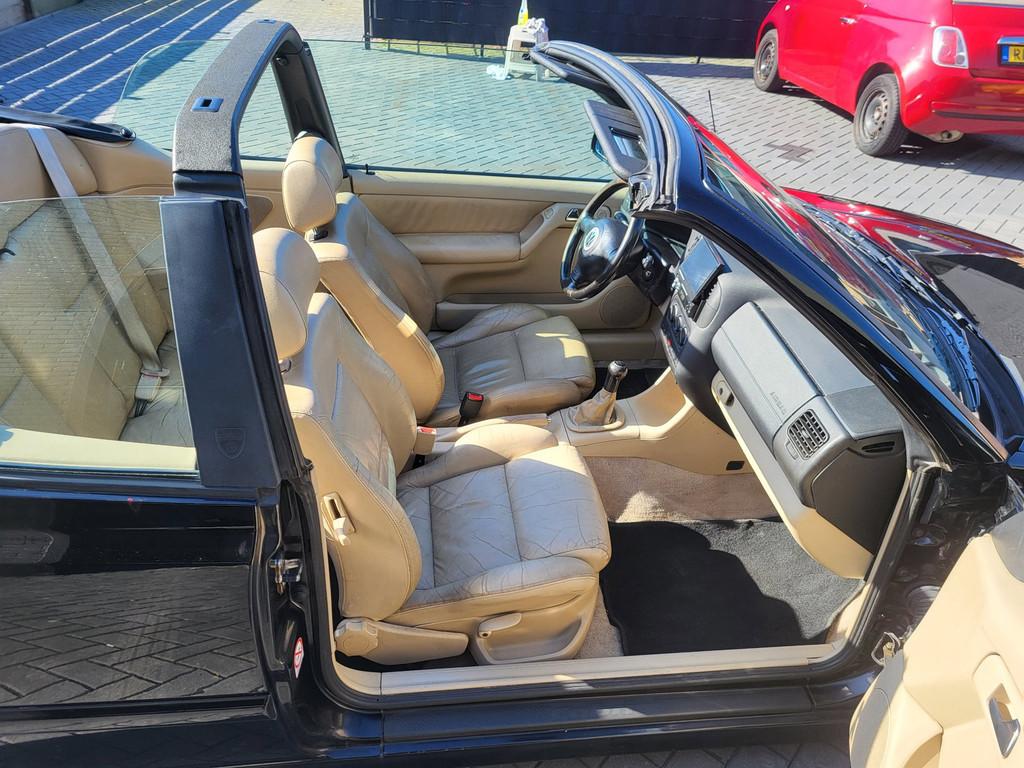 16 inch sportvelgen, Achterbank neerklapbaar, Achterruitverwarming, Airbag(s) side voor, Airbag bestuurder, Airbag passagier, Airco, Anti Blokkeer Systeem (ABS), Bestuurdersstoel in hoogte verstelbaar, Buitenspiegels elektrisch verstelbaar, Buitenspiegels in carrosseriekleur, Buitenspiegels van binnenuit verstelbaar, Buitenspiegels verwarmbaar, Bumpers in carrosseriekleur, Centrale deurvergrendeling, Comfort-electric-pakket, Derde remlicht, Elektrische ramen voor, Gordelspanners, Halogeen koplampen, Hoofdsteunen, Houten versnellingspook, Kleur zwart, Lederen bekleding, Lederen stuurwiel, Lederen versnellingspook, Leer-pakket, Passagiersstoel in hoogte verstelbaar, Ruitensproeiers verwarmbaar, Sportstoelen voor, Startblokkering, Stuurbekrachtiging, Stuur verstelbaar, Toerenteller, Verlaagd, Verwarmde voorstoelen, Voorstoelen verwarmd, Warmtewerend glas, Windscherm, Youngtimer, radio cd met klapscherm