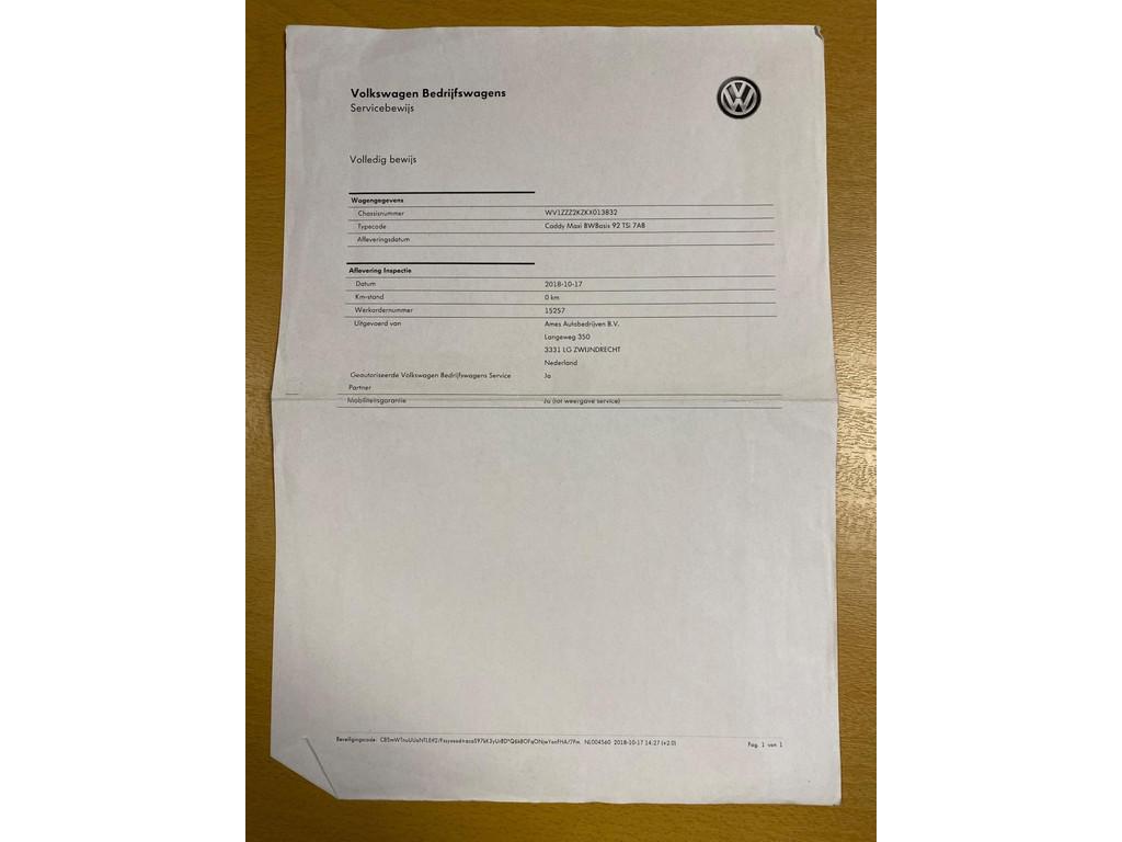 VOLKSWAGEN Caddy 1.4 TSI L2H1 BMT Maxi Comfortline, Kastinrichting, okt-18, 98.033 km, Automaat, Benzine