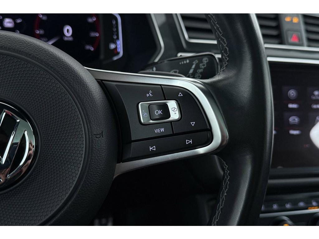 "Lichtmetalen velgen 19""", Accident Avoidance System, Achterbank in delen neerklapbaar, Achterbank verstelbaar, Achteruitrijcamera, Afdaal assistent, Airbag(s) hoofd voor, Airbag(s) knie, Airbag(s) side voor, Airbag bestuurder, Airbag passagier, Airco automatisch, Airco separaat achter, Anti Blokkeer Systeem (ABS), Apple CarPlay / Android Auto, Armsteun achter, Armsteun voor, Audioinstallatie met CD-speler, Autotelefoonvoorbereiding met Bluetooth, Bagagedek, Bandenspanningscontrolesysteem, Binnenspiegel automatisch dimmend, Boordcomputer, Bots waarschuwing systeem, Brake Assist System, Buitenspiegels elektrisch verstelbaar, Buitenspiegels verwarmbaar, Connected services, Cruise control adaptief, DAB-ontvanger, Dakrails, Dodehoek detector, Electronic Stability Program (ESP), Elektrisch bedienbare achterklep met sensorsturing, Elektrische ramen achter, Elektrische ramen voor, Elektrisch glazen panorama-dak, Extra getint glas, Grootlicht-assistent, Hill hold-functie, Hoofdsteunen actief, Keyless entry, Keyless start, LED achterlichten, LED dagrijverlichting, LED koplampen, Lederen stuurwiel, Lederen versnellingspook, Metallic lak, Mistlampen adaptief, Multimedia-voorbereiding, Navigatie full map, Parkeer-assistent, Parkeersensor achter, Parkeersensor voor, R-Line Exterieur, Regensensor, Rijstrooksensor met correctie, Ruitensproeiers verwarmbaar, Schakelmogelijkheid aan stuurwiel, Spraakbediening, Start/stop systeem, Stuurbekrachtiging snelheidsafhankelijk, Stuurhulp, Stuur verstelbaar, Stuurwiel multifunctioneel, Telefoonintegratie, Tractie Controle Systeem (TCS), Trekhaak Uitklapbaar, Variabele stuuroverbrenging, Vermoeidheids herkenning, Vervolgbotsing preventie, Verwarmde voorruit, Verwarmde voorstoelen, Volledig digitaal instrumentenpaneel, Voorstoelen in hoogte verstelbaar, Warmtewerende voorruit