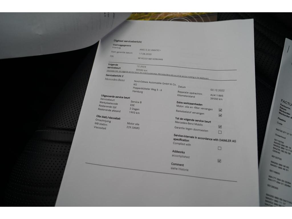 "Lichtmetalen velgen 20""", 5 deurs, 5 persoons, 20 inch lichtmetalen velgen, 100% onderhouden, 360 camera, 360 surround view, AMG-styling, AMG Pakket, AMG stoelen, AMG uitlaatsysteem, Accident Avoidance System, Achteropkomend verkeer waarschuwing, Achterstoelen elektrisch verstelbaar, Achterstoelen verwarmd, Achteruitrij camera, Adaptief Demping Systeem (ADS), Adaptief onderstel, Adaptief uitlaatsysteem, Adaptieve koplampen, Adaptive cruise control, Adaptive steering, Airbag(s) hoofd achter, Airbag(s) hoofd voor, Airbag(s) side achter, Airbag(s) side voor, Airbag bestuurder, Airbag passagier, Airco separaat achter, Alarm klasse 5 * Voertuig volgsysteem, Alarmsysteem, Alcantara stuurwiel, Ambiance LED verlichting, Anti Blokkeer Systeem (ABS), Audio installatie high-end, Audio installatie premium, Automatische snelheidsbegrenzing, Automatisch remmen, Autonome parkeerfunctie, Autotelefoonvoorbereiding met Bluetooth, Bandenspanningscontrolesysteem, Binnenspiegel automatisch dimmend, Bluetooth telefoonverbinding, Bots herkenning en activatie, Bots waarschuwing systeem, Buitenspiegel(s) automatisch dimmend, Buitenspiegels elektrisch inklapbaar, Buitenspiegels elektrisch met geheugen, Buitenspiegels met verlichting, Burmester High-End 3D Surround Sound System, Carbon Diffuser, Carbon accenten exterieur, Carbon accenten interieur, Carbon exterieur delen, Carbon stuurwiel, Climate control achterin, Climatronic Airco, Comfort lederen interieur, Connected services, Cruise control, Cruise control adaptief met Stop&Go, DAB+ Radio ontvanger, DAB-ontvanger, Designo Leder, Digitale cockpit, Dodehoekassistent, Dodehoekdetectie met correctie, Draadloze telefoonlader, Electronic climate controle, Elektrisch bedienbare achterklep, Elektrisch bedienbare achterklep met sensorsturing, Elektrisch bedienbare ramen, Elektrisch bedienbare spiegels, Elektrisch glazen panorama-dak, Elektrisch verstelbaar stuurwiel, Elektrisch verstelbare stoel(en) met geheugen, Elektrisch verstelbare stoelen, Elektrisch verstelbare stuurkolom met geheugen, Elektrisch zonnescherm achterruit, Exclusief-pakket, Executive-pakket, Extra getint glas, F1 Flippers, Geluidwerend glas, Geventileerde achterbank, Geventileerde stoelen voor, Gordelairbag(s), Grootlicht-assistent, HUD - Head-up Display, Head-up display, Interieur voorverwarmingsinstallatie, Keyless entry, Keyless entry & go, Keyless go, Klimaat regeling achterin, Koplampen adaptief, Kruisend verkeer detectie, LED achterlichten, LED dagrijverlichting, LED verlichting, Lane assist, Leder dashboard, Lederen stuurwiel, Luchtvering, Luxe lederen bekleding, Luxe lederen interieur, Massage stoelen, Matrix LED koplampen, Memory stoelen, Metallic lak, Multifunctioneel stuur, Multimedia-voorbereiding, Multimediasysteem, Navigatie-systeem full map + hard disk, Navigatie Full Map, Optie-pakket, Panoramadak variabele transparantie, Parkeer-assistent, Parkeersensor achter, Parkeersensor voor, Pianolak zwarte lijsten, Regensensor, Rijstrooksensor met correctie, Rondomzicht camera, Schakelmogelijkheid aan het stuurwiel, Schakelmogelijkheid aan stuurwiel, Sfeerverlichting LED, Sluitbekrachtiging, Softclose, Spoor assistent, Sportonderstel, Sport onderstel, Sportstoelen, Sportstuur, Spraakbediening, Startblokkering, Stoel ventilatie achter, Stoel ventilatie voor, Stuurhulp, Stuurwiel multifunctioneel, Stuurwiel verwarmd, Telefoonintegratie premium, Topview, USB aansluiting, Uitwijk assistent, Variabele stuuroverbrenging, Veiligheids-pakket, Verkeersbord detectie, Verwarmde voorruit, Verwarmde voorstoelen, Volledig digitaal instrumentenpaneel, Voorstoel(en) met massagefunctie, Warmtecomfort pakket, Warmtewerend glas, WiFi voorbereiding, Zonnescherm zijruiten, Zwarte Hemel, achterbank verwarmd, elektrisch glazen dak, isofix, leder interieur, panorama dak, parkeer sensoren, zijwind assistent