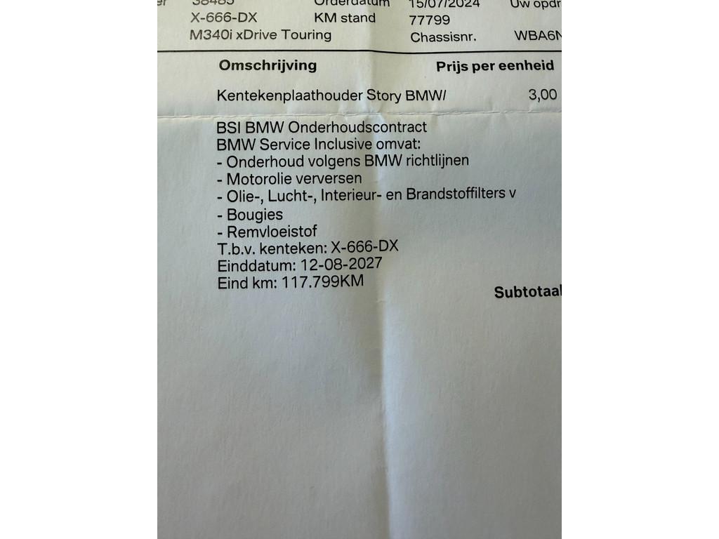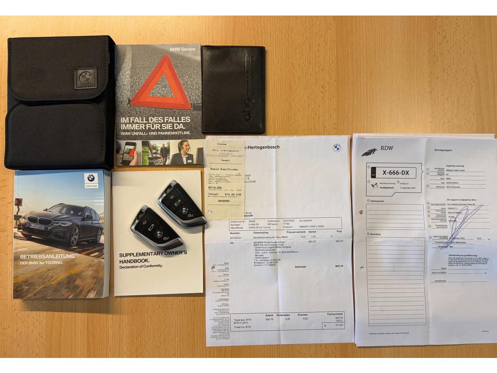 "Lichtmetalen velgen 18""", "Lichtmetalen velgen 19""", Aanhanger-assistent, Accident Avoidance System, Achterbank in delen neerklapbaar, Achteropkomend verkeer waarschuwing, Achterruit apart te openen, Achteruitrij assistent, Achteruitrijcamera, Adaptief Demping Systeem (ADS), Afdaal assistent, Airbag(s) hoofd achter, Airbag(s) hoofd voor, Airbag(s) side voor, Airbag bestuurder, Airbag passagier, Airco separaat achter, Alarm klasse 3, Aluminium interieur afwerking, Anti Blokkeer Systeem (ABS), Armsteun achter, Armsteun voor, Audio Media Pack, Audio installatie, Autotelefoonvoorbereiding met Bluetooth, Bagage-scheidingsnet, Bandenspanningscontrolesysteem, Bestuurdersstoel in hoogte verstelbaar, Binnenspiegel automatisch dimmend, Boekjes aanwezig, Boordcomputer, Bots herkenning en activatie, Bots waarschuwing systeem, Brake Assist System, Buitenspiegels elektrisch inklapbaar, Buitenspiegels elektrisch verstelbaar, Buitenspiegels verwarmbaar, Centrale deurvergrendeling met afstandsbediening, Comfort Access pakket, Connected drive, Connected services, Cruise control, Cruise control adaptief met Stop&Go, DAB-ontvanger, Dab+, Dakrails, Dealer onderhouden, Digitale Combi, Dimlichten automatisch, Dodehoek detector, Dodehoek waarschuwing, Electronic Stability Program (ESP), Electronic climate controle, Elektrisch bedienbare achterklep, Elektrisch bedienbare achterklep met sensorsturing, Elektrische ramen achter, Elektrische ramen voor, Elektrisch glazen panorama-dak, Extra getint glas, Hill hold-functie, Keyless start, Koplampen adaptief, LED achterlichten, LED dagrijverlichting, LED koplampen, Led Koplampen, Lederen bekleding, Lederen stuurwiel, Lendesteunen (verstelbaar), M Aerodynamica, M Sport Plus Pack, M sport pakket, Multimedia-voorbereiding, Navigatie-systeem full map + hard disk, Panorama dak, Parkeer-assistent, Parkeersensor achter, Parkeersensor voor, Parking Pack, Radio, Regensensor, Rijstrooksensor, Ruitensproeiers verwarmbaar, Safety-pack, Schakelmogelijkheid aan stuurwiel, Shadow line, Sperdifferentieel, Sportonderstel, Sportstoelen, Sportstuur, Spraakbediening, Start/stop systeem, Stoelverwarming, Stuurbekrachtiging snelheidsafhankelijk, Stuurhulp, Stuur verstelbaar, Stuurwiel multifunctioneel, Telefoonintegratie premium, Tellerrapport, Tractie Controle Systeem (TCS), Trekhaak-pakket, Trekhaak elektrisch uitklapbaar, Trekhaak zwenkbaar, Verkeersbord detectie, Vermoeidheids herkenning, Verwarmde voorstoelen, Volledig digitaal instrumentenpaneel, WiFi voorbereiding, Zwarte hemelbekleding