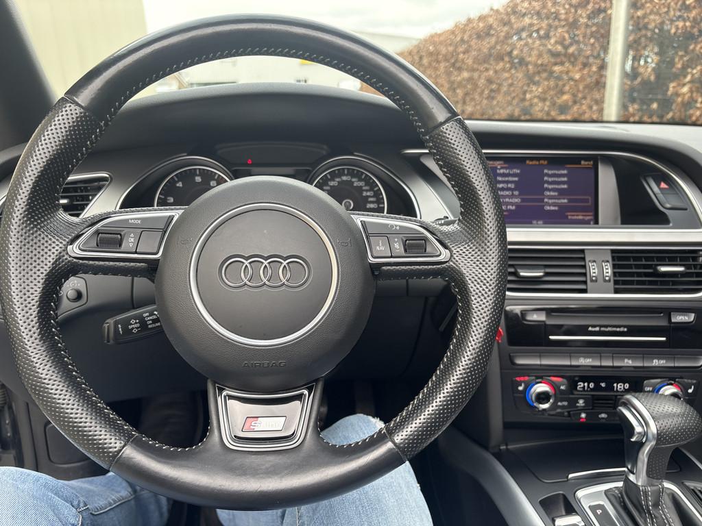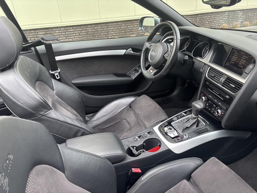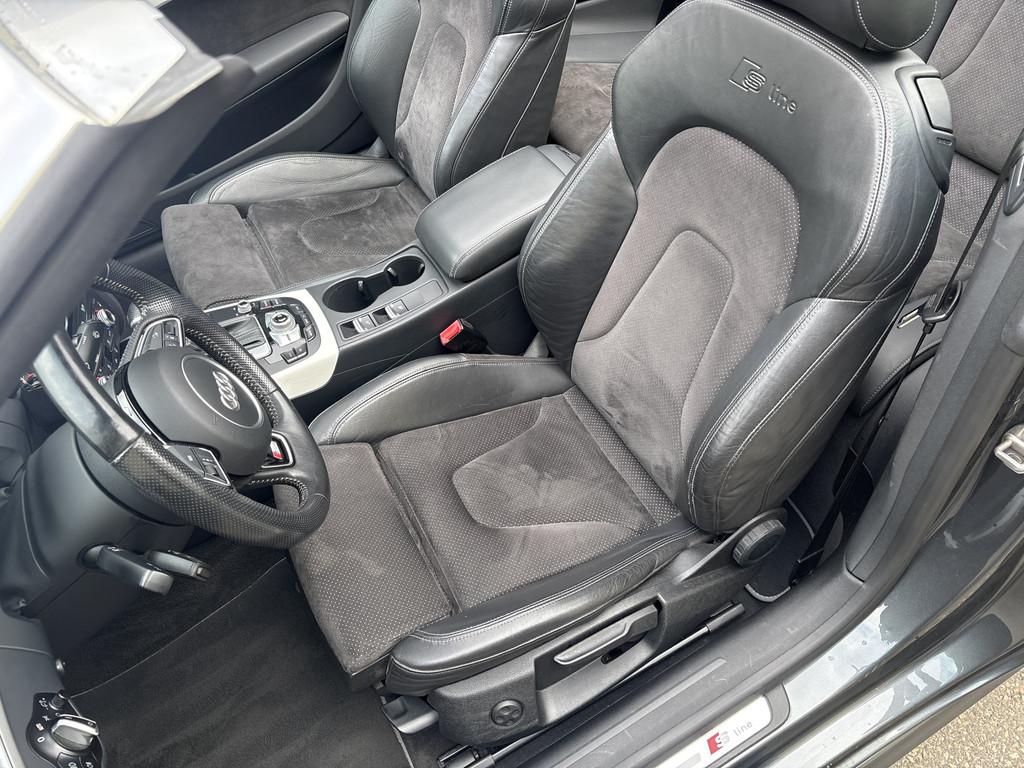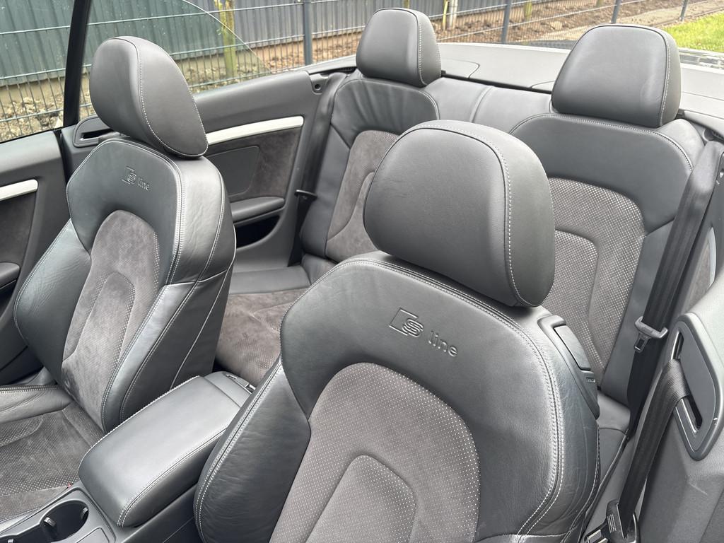 Airbag(s) side voor, Airbag bestuurder, Airbag passagier, Airco separaat achter, Alarm klasse 3, Aluminium interieur afwerking, Anti Blokkeer Systeem, Anti doorSlip Regeling, Audi Comfort, Audi Connect, Audio-navigatie full map, Audioinstallatie met cd-speler, Autotelefoon voorbereiding, Boordcomputer, Buitenspiegels elektrisch inklapbaar, Buitenspiegels elektrisch verstel- en verwarmbaar, Cruise control, Dimlichten automatisch, Elektrisch bedienbare kap, Elektronisch Sper Differentieel, Elektronisch Stabiliteits Programma, Keyless entry, LED dagrijverlichting, Lederen/stof bekleding, Lichtmetalen velgen 18", Metaalkleur, Navigatiesysteem full map + hard disk, Parkeersensor achter, Regensensor, S Line exterieur, Sportonderstel, Sportstoelen, Stoelverwarming, WiFi, airco automatisch, bi-xenon koplampen, centrale vergrendeling met afstandsbediening, koplampreiniging, mistlampen voor, ruitensproeiers/wisserbladen verwarmbaar, stuur leder, stuur leder en multifunctioneel, voorstoel(en) elektrisch verstelbaar