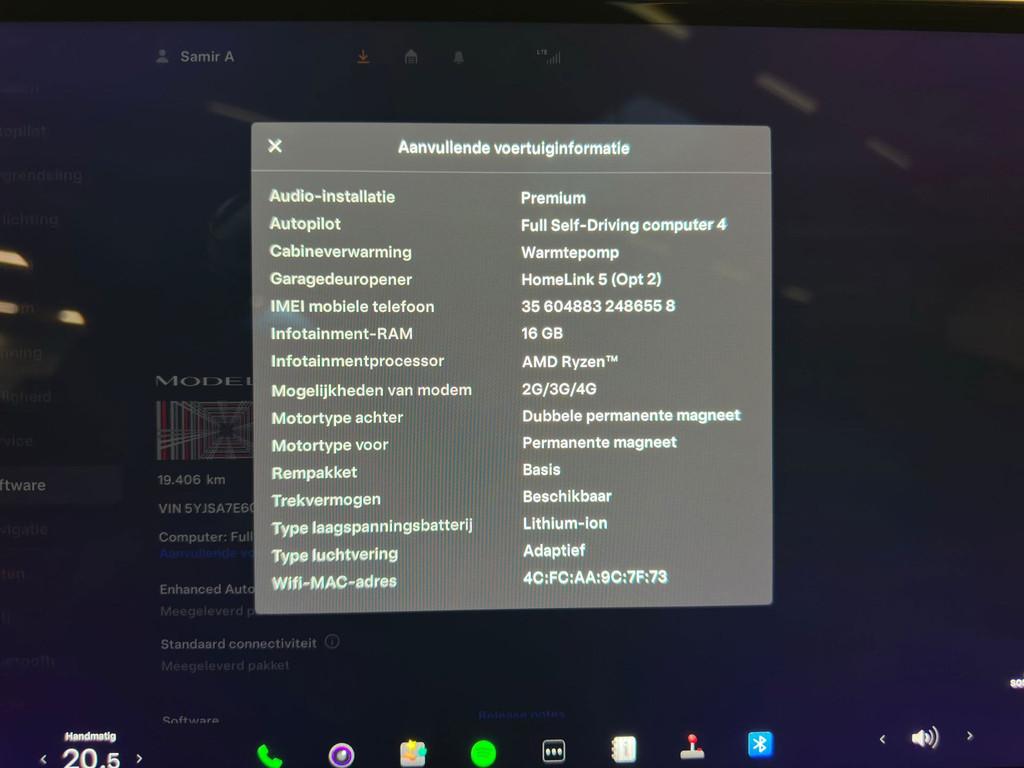 "Lichtmetalen velgen 19""", Accident Avoidance System, Achterbank in delen neerklapbaar, Achterbank verwarmd, Achterspoiler, Achteruitrijcamera, Adaptive Cruisecontrol, Airbag(s) hoofd achter, Airbag(s) hoofd voor, Airbag(s) knie, Airbag(s) side voor, Airbag bestuurder, Airbag passagier, Airco separaat achter, Alarmsysteem, Anti Blokkeer Systeem (ABS), Armsteun achter, Armsteun voor, Audio installatie premium, Autonome parkeerfunctie, Autopilot, Autotelefoonvoorbereiding met Bluetooth, Bandenspanningscontrolesysteem, Binnenspiegel automatisch dimmend, Boordcomputer, Bots waarschuwing systeem, Buitenspiegel(s) automatisch dimmend, Buitenspiegels elektrisch inklapbaar, Buitenspiegels elektrisch met geheugen, Buitenspiegels elektrisch verstelbaar, Buitenspiegels verwarmbaar, Carbonafwerking interieur, Connected services, Cruise control adaptief met Stop&Go, Dimlichten automatisch, Dodehoek detector, Draadloze telefoonlader, Electronic Stability Program (ESP), Electronic climate controle, Elektrisch bedienbare achterklep, Elektrische ramen voor, Elektrisch verstelbare stoel(en) met geheugen, Elektrisch verstelbare stuurkolom met geheugen, Full Self-Driving Capability, Geventileerde stoelen, Keyless entry, Keyless start, Koplampen adaptief, LED achterlichten, LED dagrijverlichting, LED koplampen, Lederen stuurwiel, Luchtvering, Luxe lederen bekleding, Metallic lak, Multimedia-voorbereiding, Navigatie full map, Oplaadmogelijkheid, Panorama-dak, Panoramadak, Parkeersensor achter, Parkeersensor voor, Regensensor, Rijstrooksensor, Rondomzicht camera, Ruitensproeiers verwarmbaar, Sfeerverlichting, Spraakbediening, Startblokkering, Stoel ventilatie voor, Stoelverwarming achterin, Stoelverwarming voorin, Stuurbekrachtiging snelheidsafhankelijk, Stuurhulp, Stuurverwarming, Stuurwiel multifunctioneel, Tractie Controle Systeem (TCS), Verkeersbord detectie, Verwarmde voorstoelen, Volledig digitaal instrumentenpaneel, WiFi voorbereiding, Xenon, Zelfstandige rijstrookwissel