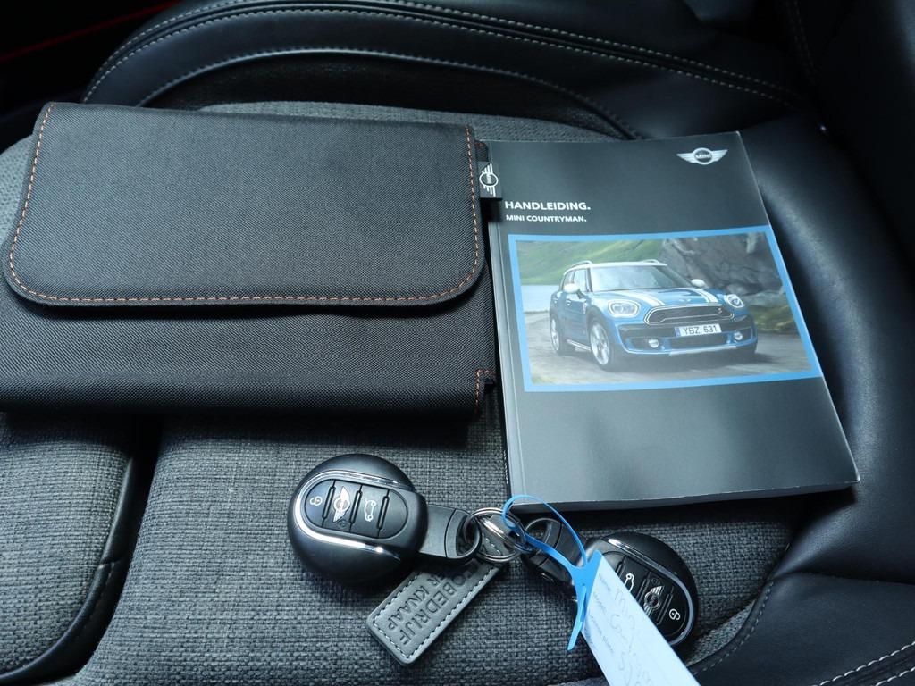 Anti Blokkeer Systeem, Automatische airconditioning (534), Bekleding stof/leer combinatie Black Pearl (KDE1), Bluetooth telefoonvoorbereiding, Boordcomputer (550), Comfort Access (322), Cruise Control (544), Dakrailing (in mat zwart) (386), Elektronisch Stabiliteits Programma, Head-up Display (6AD), Kappen buitenspiegels carrosseriekleur (3AB), LED koplampen met adaptieve lichtverdeling (5A4), LED mistlampen voor (5A1), Middenarmsteun achter (opklapbaar) met twee bekerhouders (497), Middenarmsteun vóór met opbergruimte (473), Midnight Black metaallak (A94), Mistlampen voor (520), Navigatiesysteem (6UM), Parc Distance Control achter (507), RDW-leges, Radio MINI Visual Boost (6FP), achterbank in delen neerklapbaar, achteropkomend verkeer waarschuwing, alarm klasse 1(startblokkering), bandenspanningscontrolesysteem, bestuurdersairbag, bestuurdersstoel in hoogte verstelbaar, buitenspiegels elektrisch verstel- en verwarmbaar, dakspoiler, dimlichten automatisch, elektrische ramen voor en achter, elektronische remkrachtverdeling, hill hold functie, hoofd airbag(s) achter, hoofd airbag(s) voor, lederen stuurwiel, lichtmetalen velgen 17", multimedia-voorbereiding, passagiersairbag, regensensor, ruitensproeiers verwarmbaar, sportstuur, stuurwiel multifunctioneel, vermoeidheids herkenning, zij airbag(s) voor