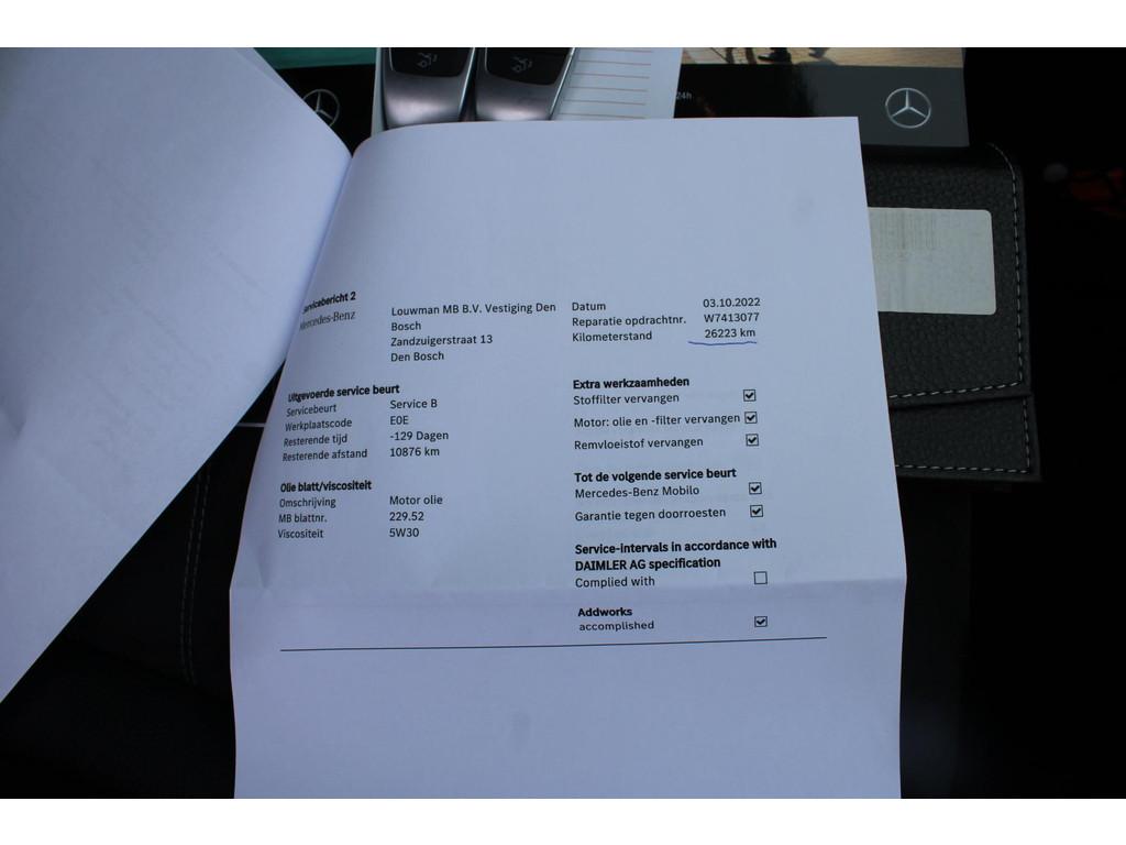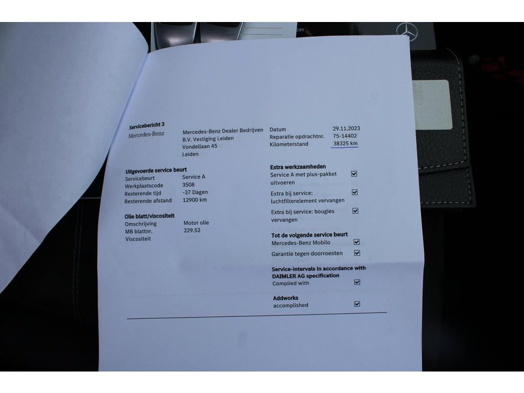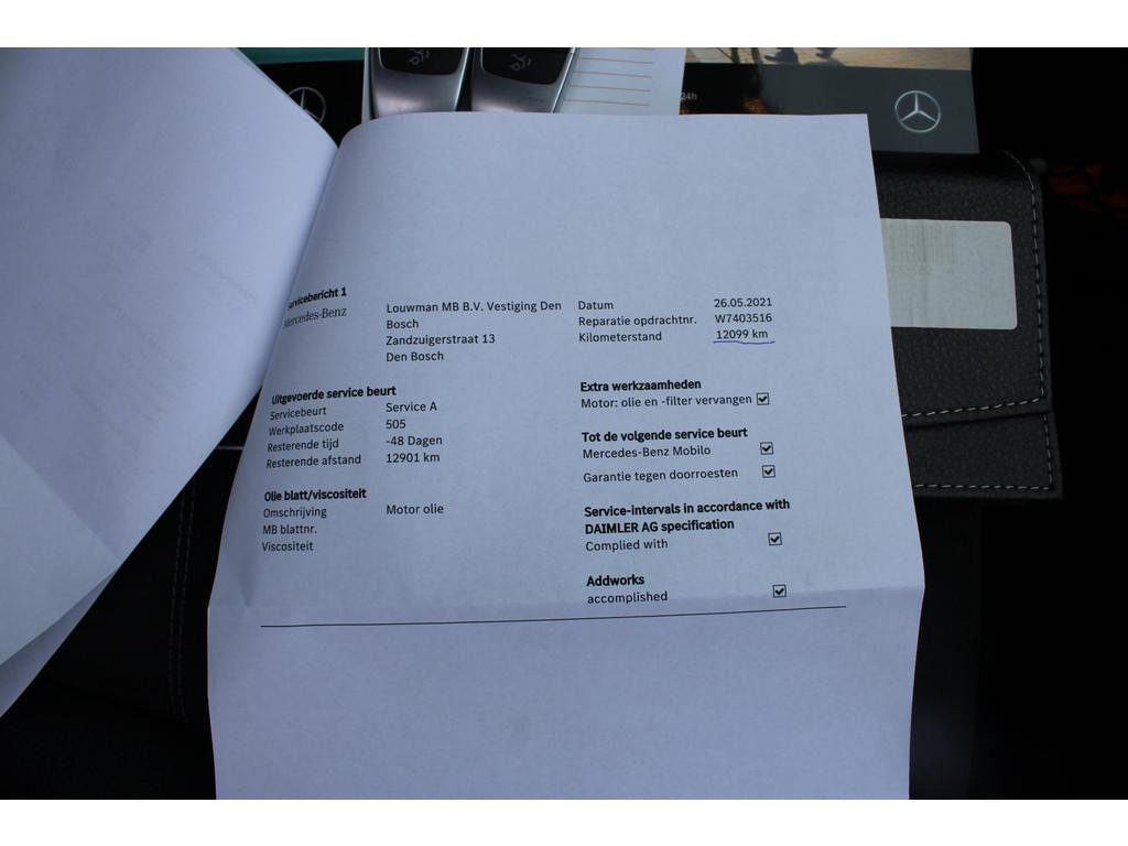 AMG-styling, Anti Blokkeer Systeem, Anti doorSlip Regeling, Autonomous Emergency Braking, Bluetooth telefoonvoorbereiding, Elektronisch Stabiliteits Programma, Instructieboekjes aanwezig, LED achterlichten, LED dagrijverlichting, LED koplampen, Onderhoudsboekje (digitaal), Volledige dealeronderhoudshistorie beschikbaar, achterbank in delen neerklapbaar, achteropkomend verkeer waarschuwing, achteruitrijcamera, airco (automatisch), alarm klasse 1(startblokkering), aluminium interieur afwerking, armsteun voor, bagage-scheidingsnet, bagagedek, bandenspanningscontrolesysteem, bestuurdersairbag, binnenspiegel automatisch dimmend, bots waarschuwing systeem, buitenspiegel(s) automatisch dimmend, buitenspiegels elektrisch inklapbaar, buitenspiegels elektrisch verstel- en verwarmbaar, buitenspiegels met verlichting, centrale deurvergrendeling met afstandsbediening, climate control, connected services, cruise control, dakrails, dimlichten automatisch, elektrisch bedienbare achterklep, elektrische ramen achter, elektrische ramen voor, elektrisch verstelbare voorstoel(en), elektronische remkrachtverdeling, hill hold functie, hoofd airbag(s) achter, hoofd airbag(s) voor, keyless start, knie airbag(s), lederen stuurwiel, lendesteunen (verstelbaar), lichtmetalen velgen 18", metaalkleur, multimedia-voorbereiding, navigatiesysteem full map, parkeer assistent, parkeersensor achter, parkeersensor voor, passagiersairbag, radio, regensensor, schakelmogelijkheid aan stuurwiel, sportonderstel, sportstuur, spraakbediening, start/stop systeem, stof/kunstlederen bekleding, stuurbekrachtiging snelheidsafhankelijk, stuurwiel multifunctioneel, variabele stuuroverbrenging, verlaagde carrosserie, volledig digitaal instrumentenpaneel, voorstoelen in hoogte verstelbaar, voorstoelen verwarmd, warmtewerend glas, zij airbag(s) voor