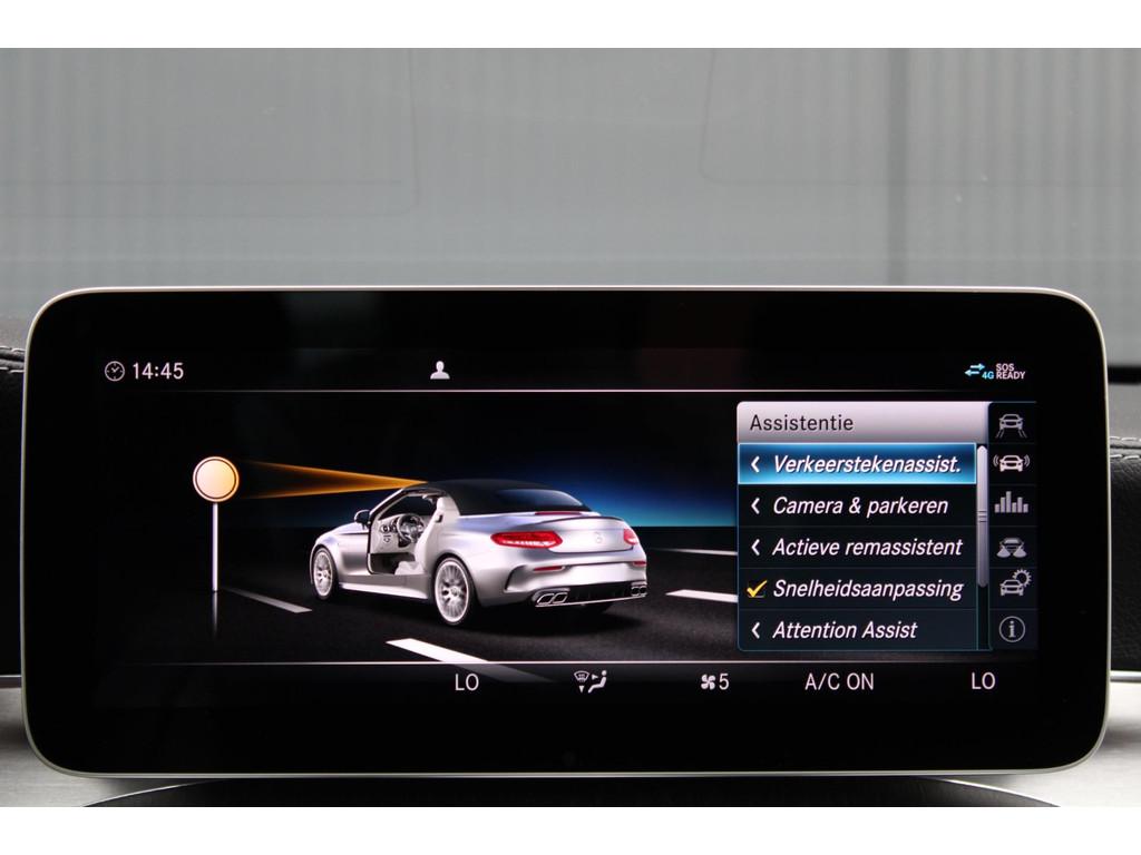 "Lichtmetalen velgen 18""", AMG-styling, Accident Avoidance System, Achteropkomend verkeer waarschuwing, Achterspoiler, Adaptief Demping Systeem (ADS), Airbag(s) hoofd voor, Airbag(s) side achter, Airbag(s) side voor, Airbag bestuurder, Airbag passagier, Airco automatisch, Aluminium interieur afwerking, Anti Blokkeer Systeem (ABS), Armsteun voor, Audio installatie premium, Autotelefoonvoorbereiding met Bluetooth, Bandenspanningscontrolesysteem, Binnenspiegel automatisch dimmend, Bots waarschuwing systeem, Buitenspiegel(s) automatisch dimmend, Buitenspiegels elektrisch inklapbaar, Buitenspiegels elektrisch verstelbaar, Buitenspiegels met verlichting, Buitenspiegels verwarmbaar, Connected services, Cruise control, Cruise control adaptief met Stop&Go, DAB-ontvanger, Dimlichten automatisch, Dodehoek detector, Draadloze telefoonlader, Electronic Brake Distribution (EBD), Electronic Stability Program (ESP), Elektrisch bedienbare kap, Elektrische ramen voor, Elektrisch verstelbare stoel(en) met geheugen, Grootlicht-assistent, Head-up display, Hill hold-functie, Keyless entry, Keyless start, LED achterlichten, LED dagrijverlichting, Lederen bekleding, Lederen stuurwiel, Lendesteunen (verstelbaar), Matrix LED koplampen, Multimedia-voorbereiding, Navigatie-systeem full map + hard disk, Nekverwarming, Parkeer-assistent, Parkeersensor achter, Parkeersensor voor, Regensensor, Rijstrooksensor, Rijstrooksensor met correctie, Rondomzicht camera, Schakelmogelijkheid aan stuurwiel, Speciale kleur, Sportstoelen, Sportstuur, Spraakbediening, Start/stop systeem, Startblokkering, Stoel ventilatie voor, Stof/kunstlederen bekleding, Stuurbekrachtiging snelheidsafhankelijk, Stuurhulp, Stuurwiel multifunctioneel, Telefoonintegratie premium, Tractie Controle Systeem (TCS), Variabele stuuroverbrenging, Verkeersbord detectie, Verwarmde voorstoelen, Volledig digitaal instrumentenpaneel, Warmtewerend glas, Windscherm