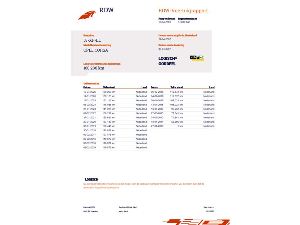 Mileage 160.200 NAP checked