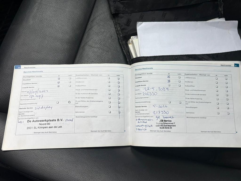 "Lichtmetalen velgen 16""", "Lichtmetalen velgen 17""", "Lichtmetalen velgen 18""", Achterbank in delen neerklapbaar, Airbag bestuurder, Airbag passagier, Airco automatisch, Alarm klasse 3, Aluminium interieur afwerking, Armsteun voor, Audio-navigatie full map, Audio-navigatiesysteem, Audioinstallatie met CD-wisselaar, Autotelefoonvoorbereiding, Bandenspanningscontrolesysteem, Bi-xenon koplampen, Binnenspiegel automatisch dimmend, Bluetooth, Boordcomputer, Cd-wisselaar, Centrale deurvergrendeling met afstandsbediening, Cruise control, Dakrails, Elektrische ramen achter, Elektrische ramen voor, Elektrisch glazen schuif-/kanteldak, Elektrisch schuif-/kanteldak met zonnepanelen, Lederen/stoffen bekleding, Lederen stuurwiel, Lederen versnellingspook, Lendesteunen (verstelbaar), Metallic lak, Navigatie, Panoramadak, Parkeersensor achter, Regensensor, S Line-pakket2, Speciale kleur, Sportonderstel, Sportstoelen, Stuurbekrachtiging, Stuurbekrachtiging snelheidsafhankelijk, Verwarmde voorstoelen, Voorstoelen